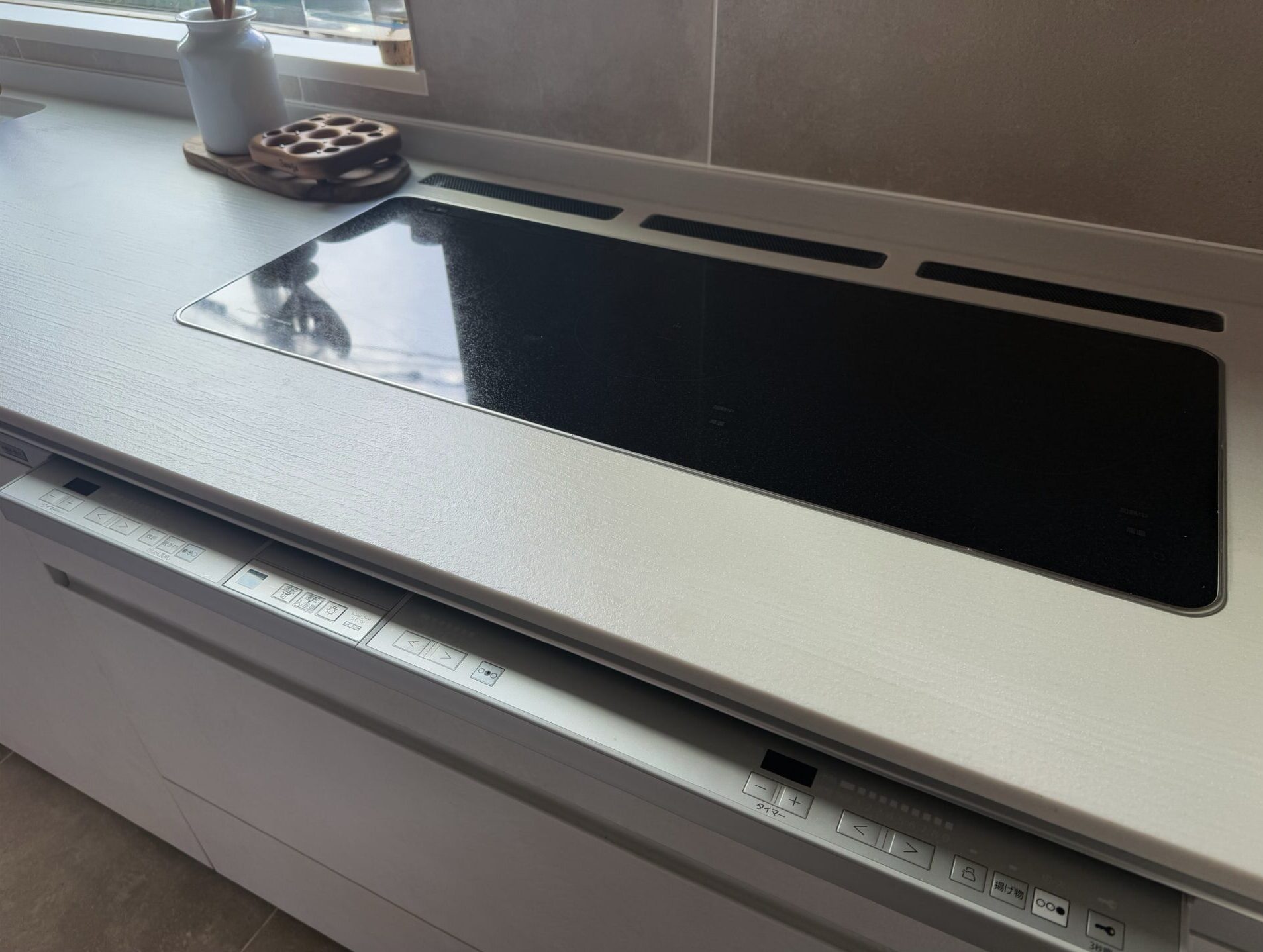 トリプルワイドIHは、真ん中のIHだけ火力が両端より出ない設計になっています。(両端はレベル1~9まで、真ん中は1~6まで) 導入前は少し不安だったのですが…… 実際に使ってみると、レベル6でも中火以上の火力はしっかり出るので、普段の料理で不便に感じることは何一つありませんでした!