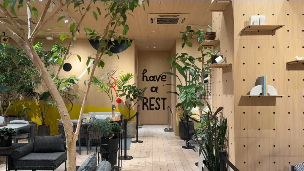 生き生きとした観葉植物、さらにはソファやテーブルまで。