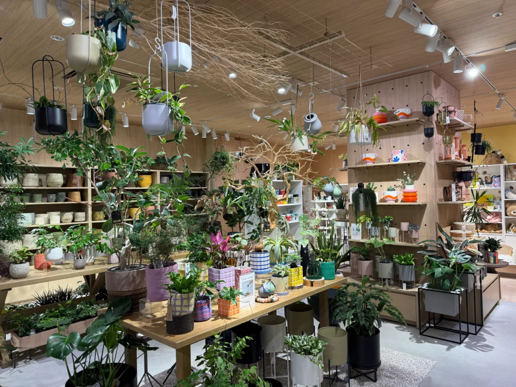 店内にはショップの観葉植物や鉢が美しくディスプレイされていて、