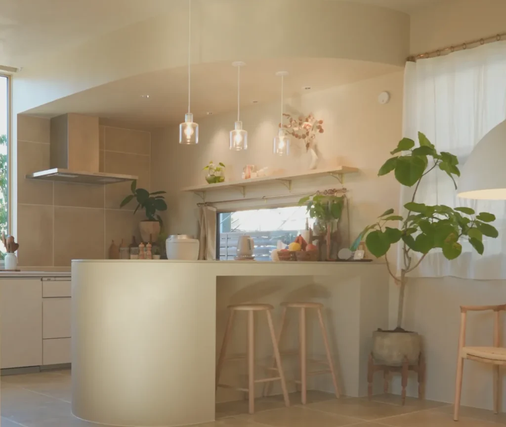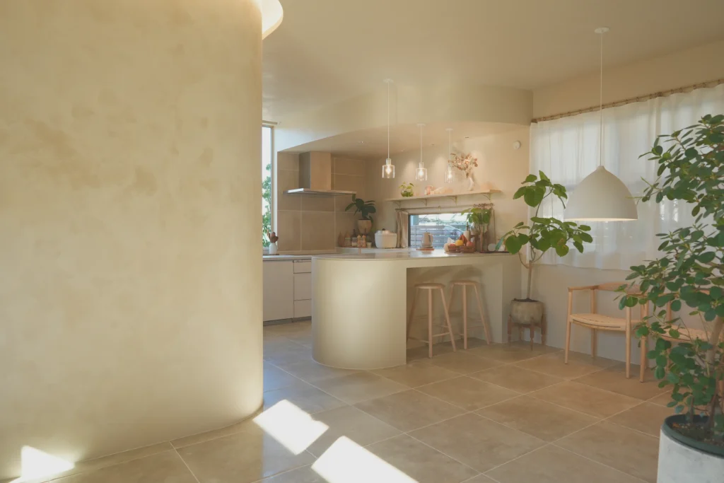 【採用箇所】キッチンのR壁、中庭周り、玄関