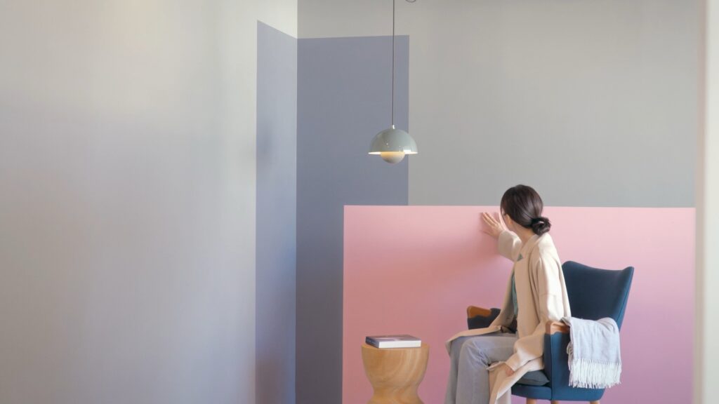 私たちは同じ空間をストーンペイントやエッグシェルと塗り分けたため、担当者さんがそれぞれの色の配分を数字で細かく見てくれて、結果完璧に色が合ってくれてとても感謝しています。