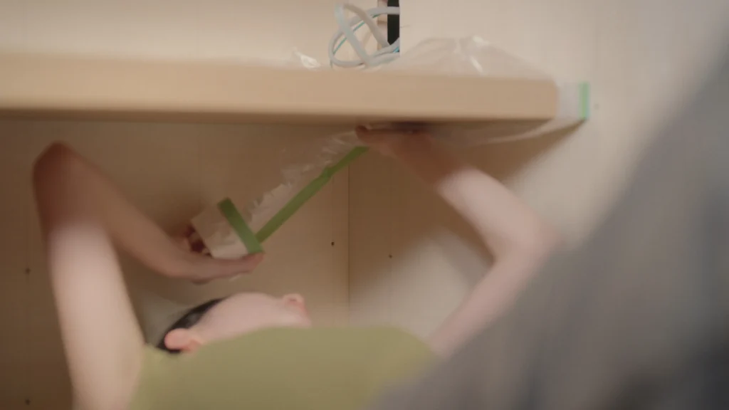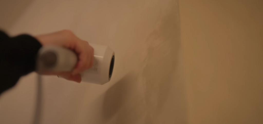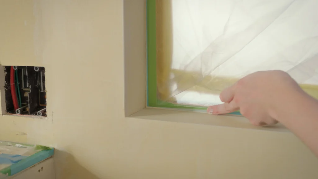 最後に、マステと壁の「1mmの隙間」にコーキング材を薄く指で塗り広げます。