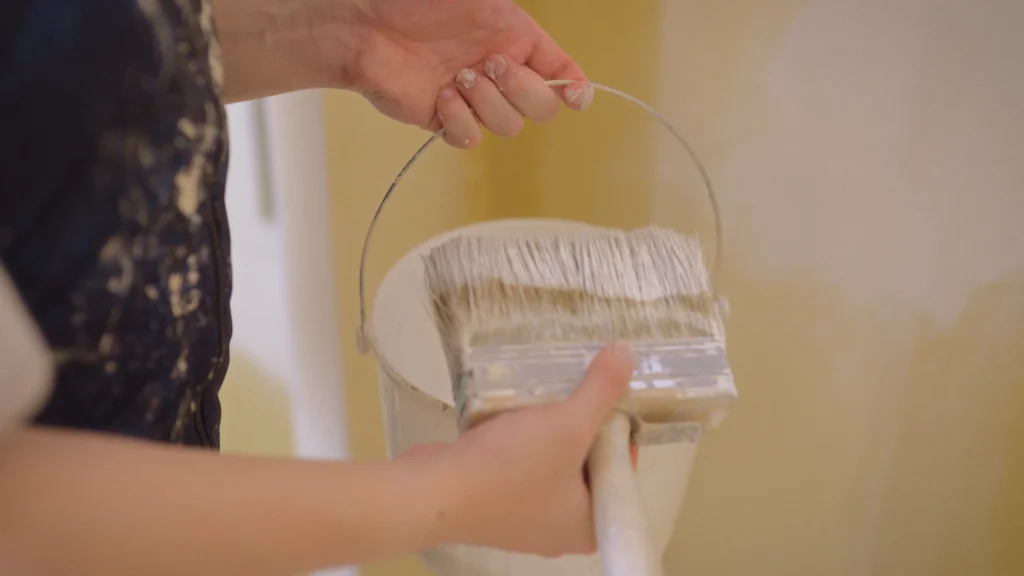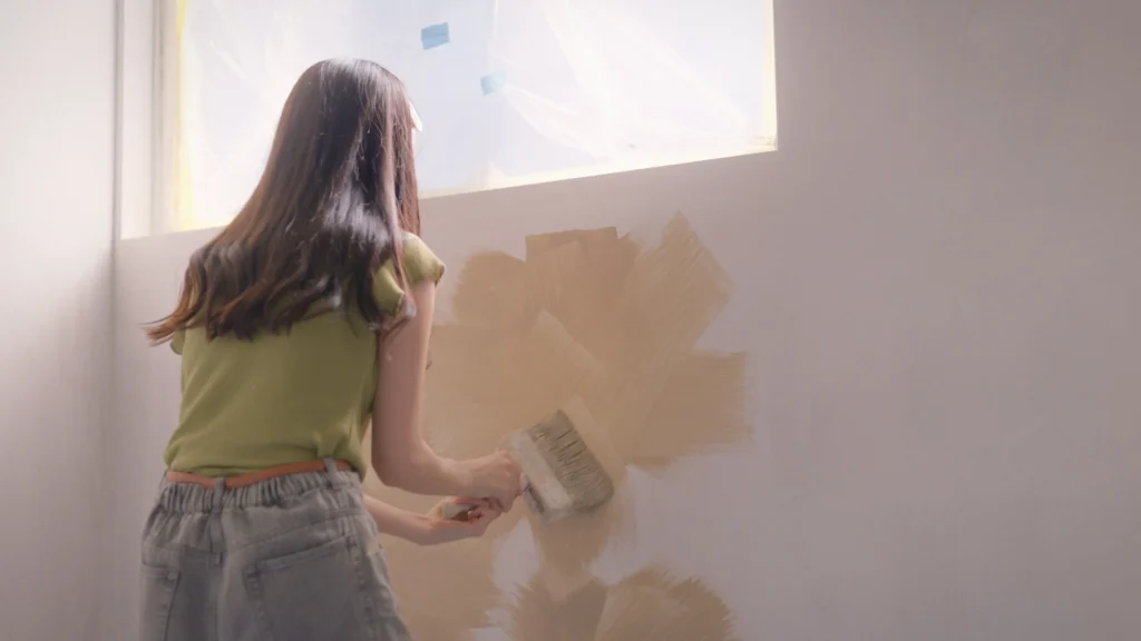 塗料自体が重たいため、刷毛先に軽く塗料を含ませて、少しずつ壁に伸ばしていくように塗ります。