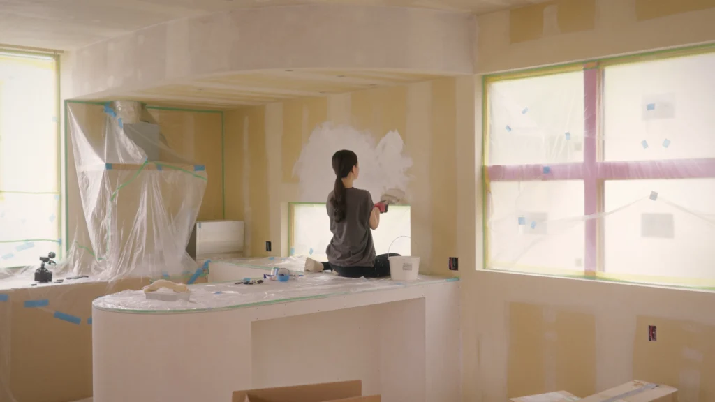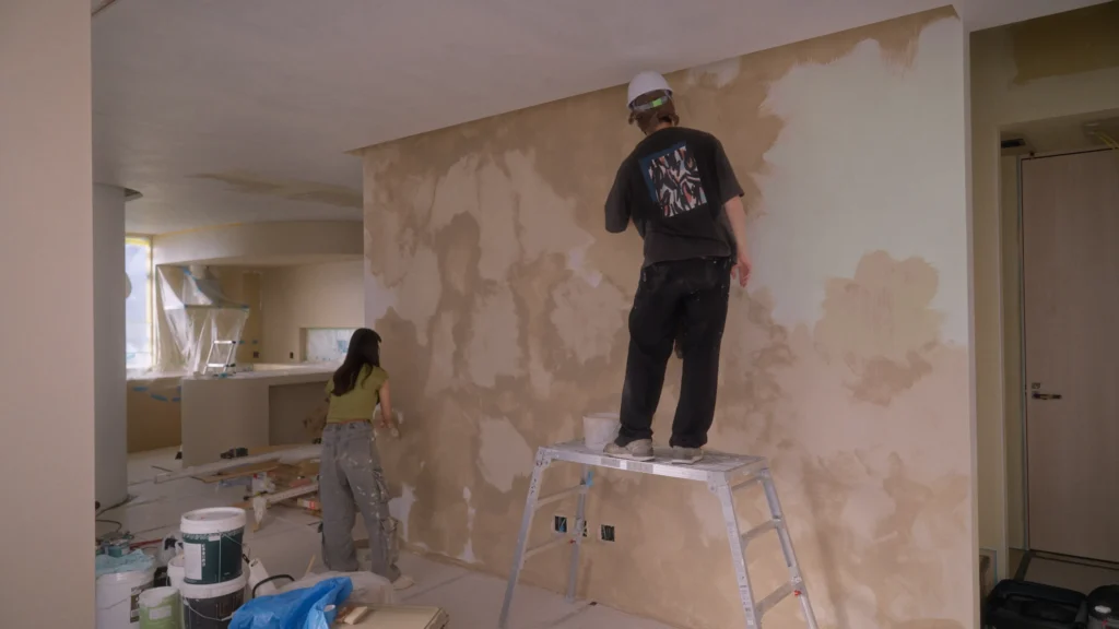 もし1つの空間で複数のテクスチャを塗り分ける場合は、「ストーンペイントコースを最後に塗る」ことをお勧めします。