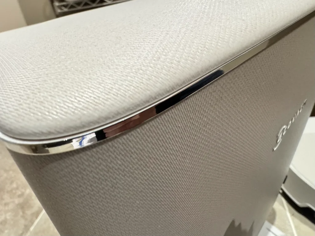 ですが、T90 Omniは本体もドックも、温かみのあるファブリック調のエンボス加工が施されています。