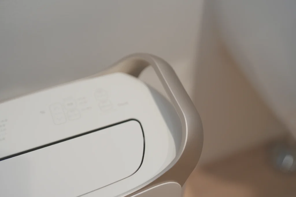 除湿機というと、どうしても「機械っぽさ」や野暮ったさが出やすい家電ですが、PuriCareはツヤを抑えた質感と滑らかな曲線で、まるでオブジェのような美しさ。