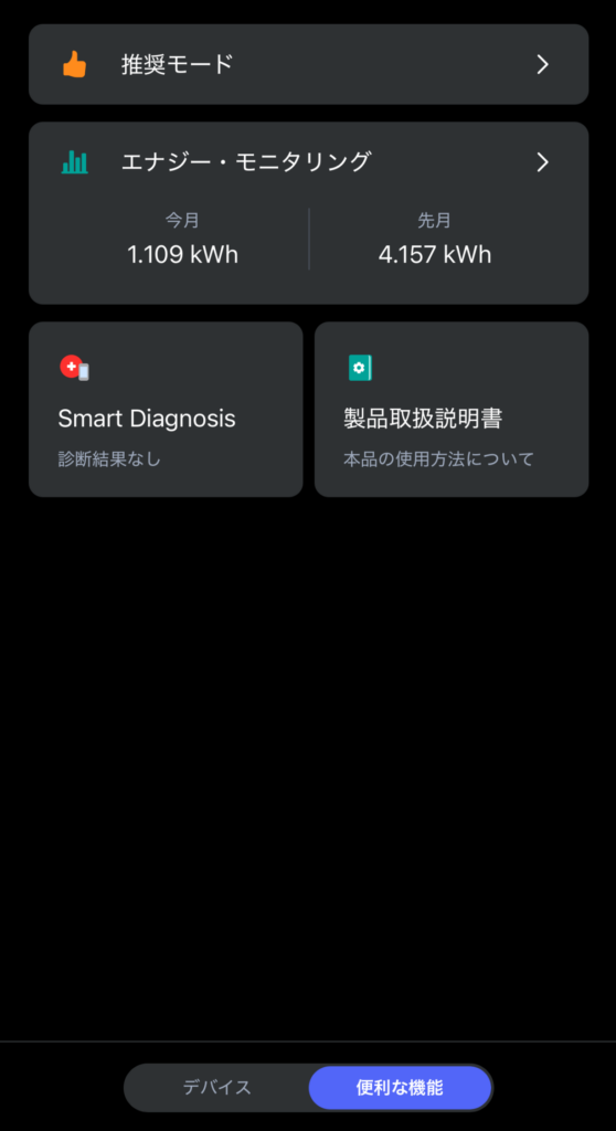 また、赤外線リモコンで動くタイプでもないため、SwitchBotなどのスマートリモコンで無理やり操作することもできません。(スマホアプリでの操作は可能です)